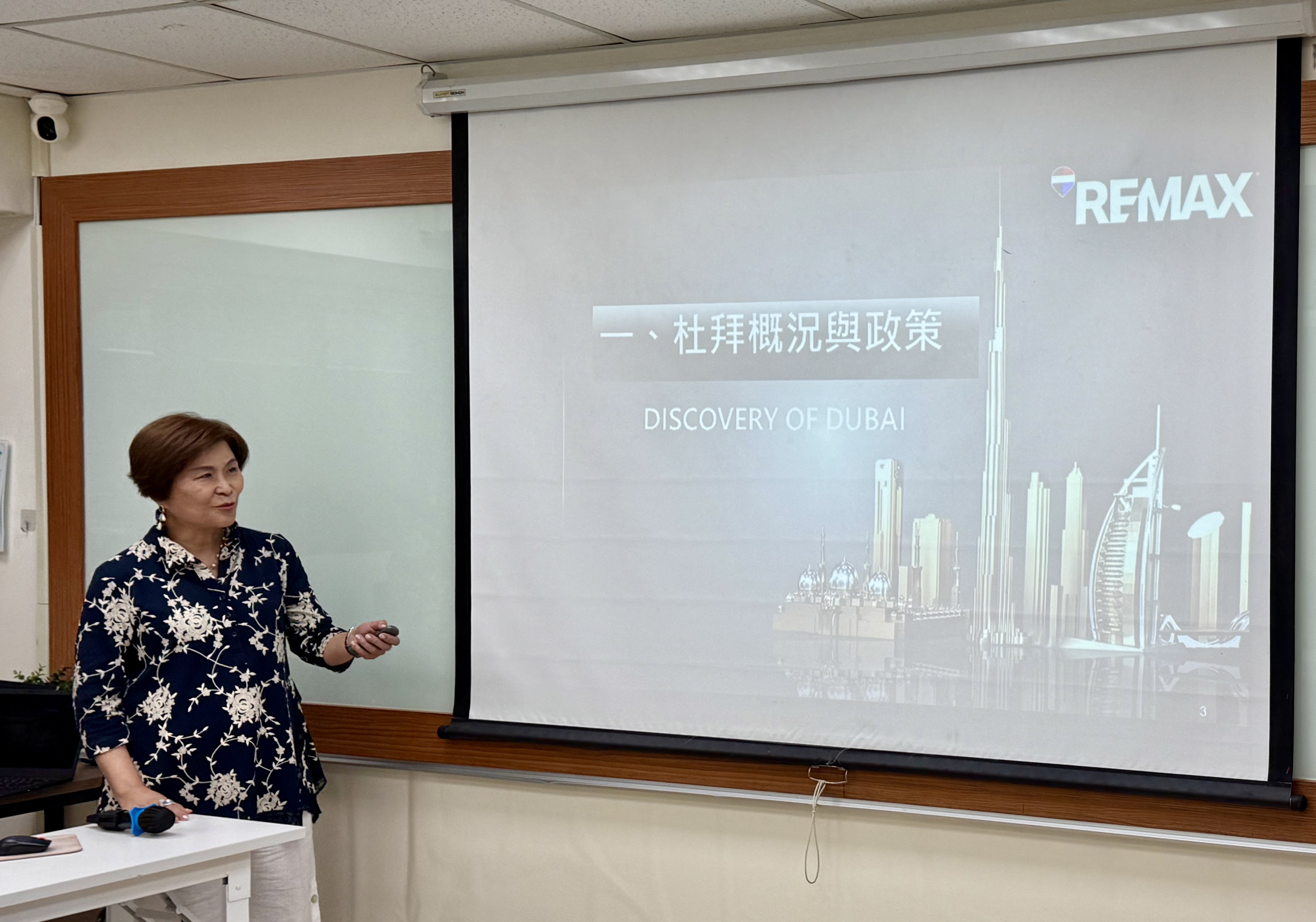 藉由精心設計的簡報,她從杜拜的地理、人口與經濟背景切入,系統性說明當地地產市場的產品分類與投資邏輯,包括住宅型物件、商業辦公室、頂樓豪宅(Penthouse)以及長期持有型的土地投資。她也進一步比較各類型產品的投報率、去化難度與市場接受度。